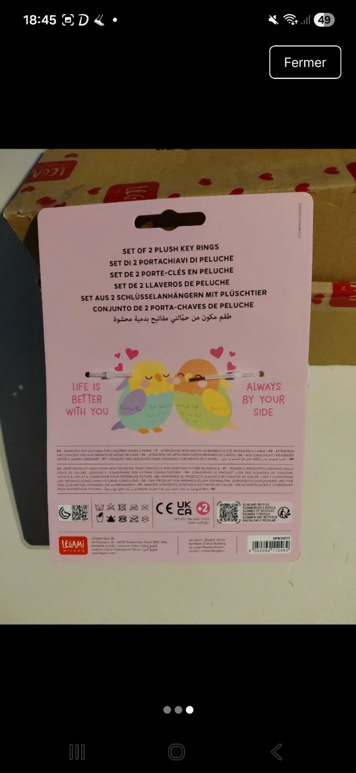 Porte clé oiseaux perroquet perruche neuve avec étiquette legami - photo numéro 3
