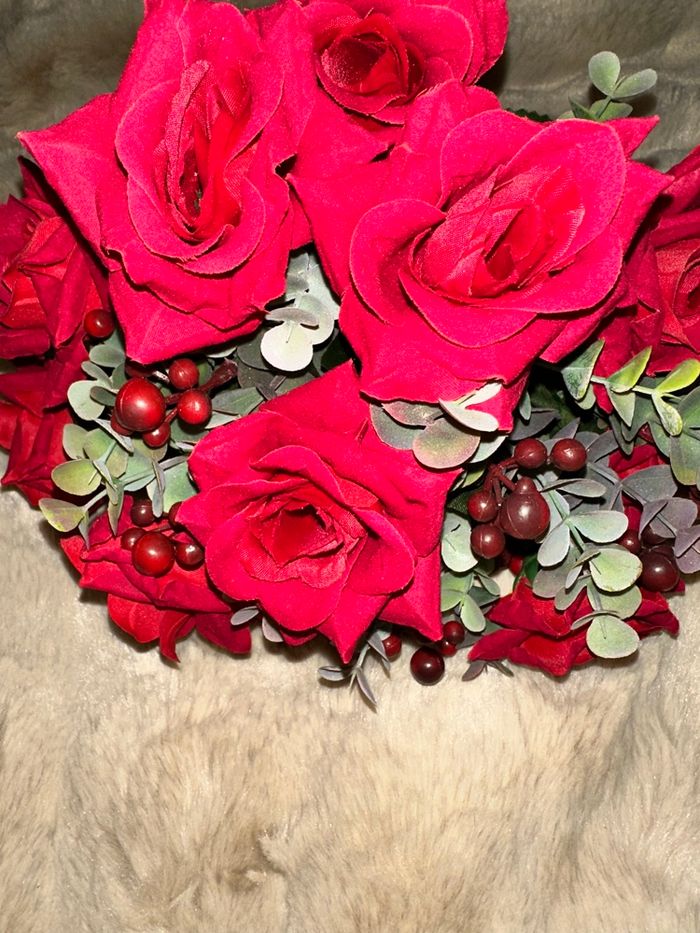 Bouquet 12 roses rouges eucalyptus, marque César fleurs, hauteur environ 40 cm #decorationkay57070 #eucalyptus