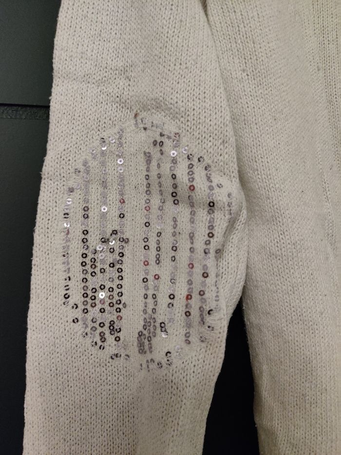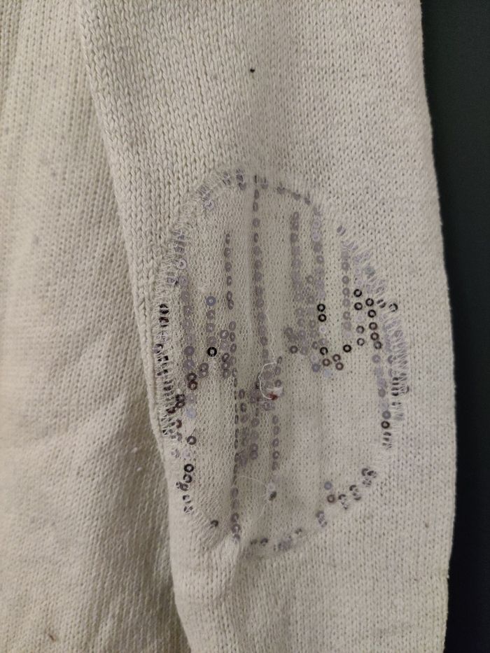 Pull maille écru avec coude en sequins, plusieurs sont manquants le reste est en très bon état. ⚠️ lavage à la main recommandé 55% coton 45% acrylique #lolilaurafemme38