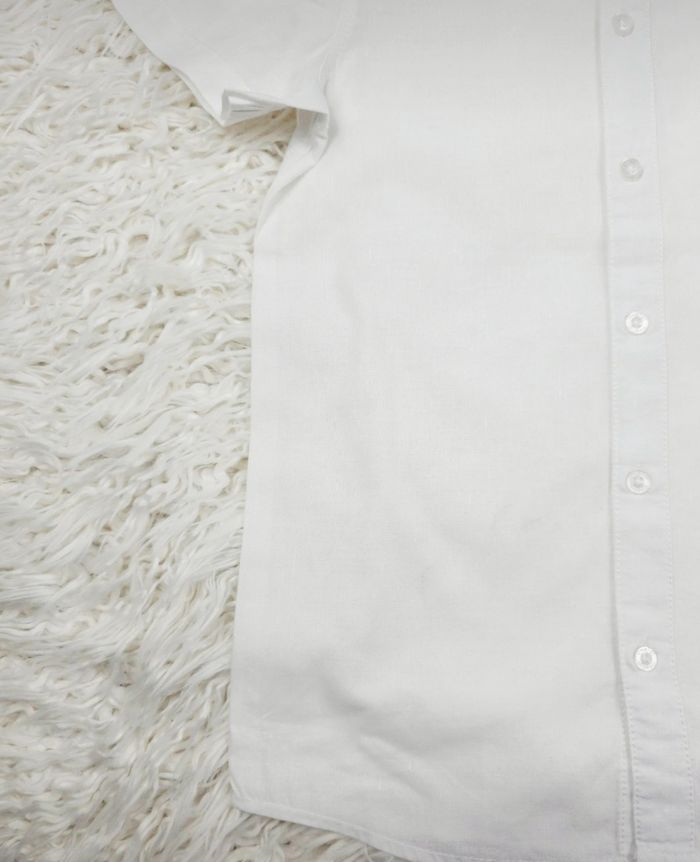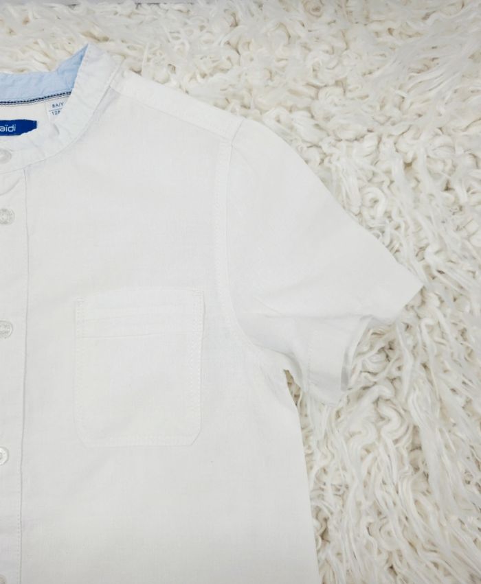 Chemise manches courtes col mao blanche Garçon taille 8 ans marque Okaidi ✴️ Manches courtes ✴️ Composition => 68 % coton 32 % lin ✴️ Fermeture par sept petits boutons ✴️ Couleur => Blanc ✴️ Petite poche sur la poitrine