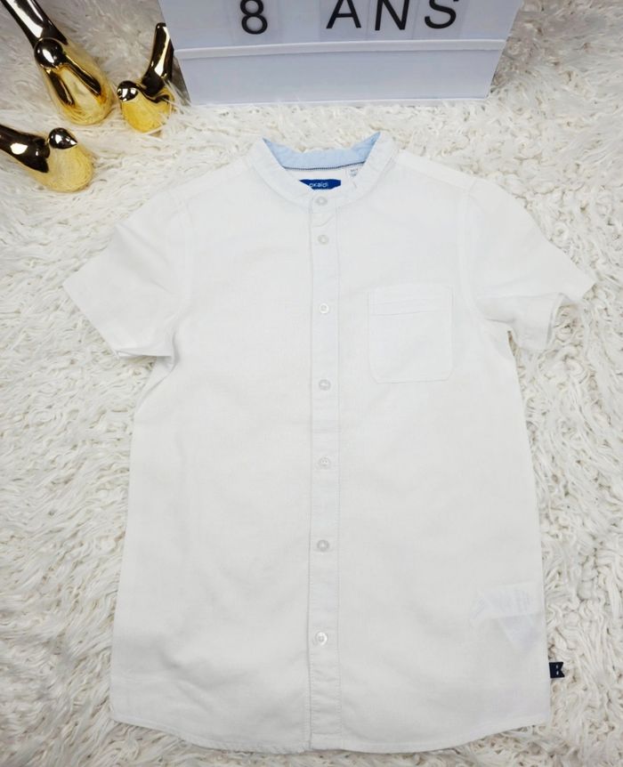 Chemise manches courtes col mao blanche Garçon taille 8 ans marque Okaidi 🎸  - photo numéro 1