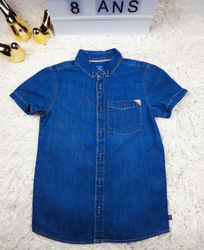 Chemise manches courtes en jean bleu denim Garçon taille 8 ans marque Okaidi 🎸  - photo numéro 1