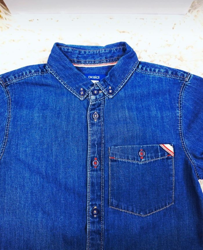 Chemise manches courtes en jean bleu denim Garçon taille 8 ans marque Okaidi 🎸  - photo numéro 5