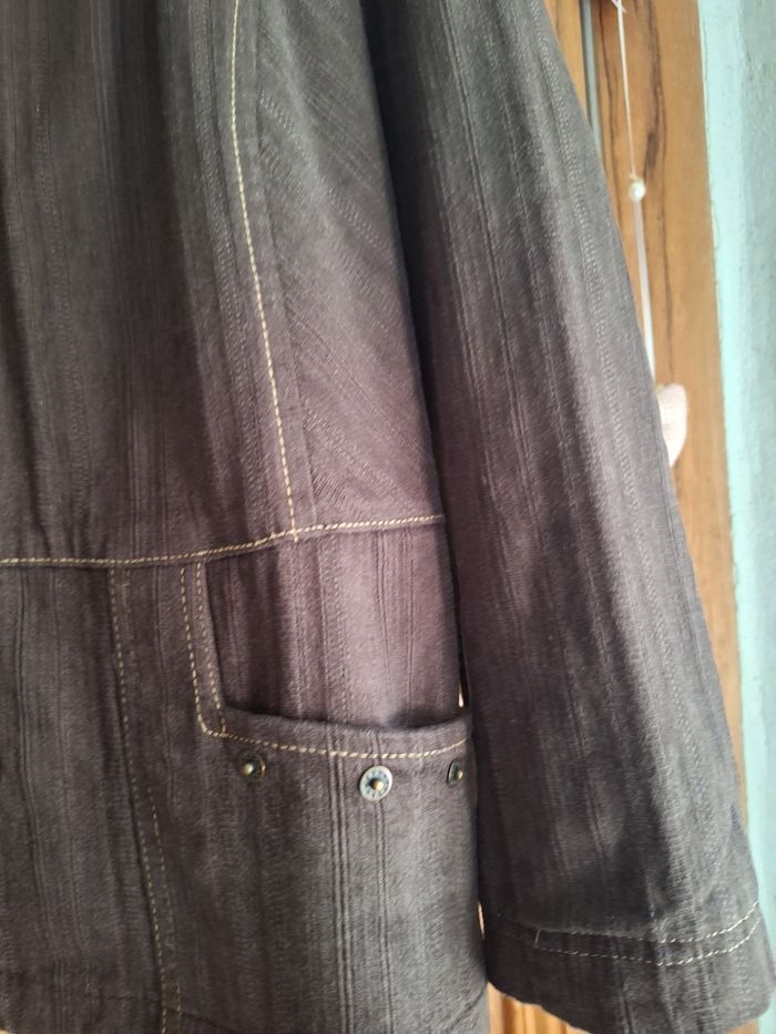 Veste femme Nous Aussi Paris – Indiqué T 44 mais plutôt une taille 40 Veste élégante et structurée de la marque Nous Aussi Paris . Couleur marron foncé avec surpiqûres contrastées, idéale pour un look casual chic. Intérieur entièrement doublé pour un meilleur confort. Détails : Coupe droite, confortable Fermeture par boutons Deux poches avant avec boutons décoratifs Î Matière type denim fin, très agréable à porter Parfait état, très peu portée Style : à porter avec un jean, un pantalon habillé ou même une robe pour un effet sophistiqué. 💡 Veste polyvalente, parfaite pou l’automne, le printemps ou les soirées fraîches. Vintage mais en parfait état