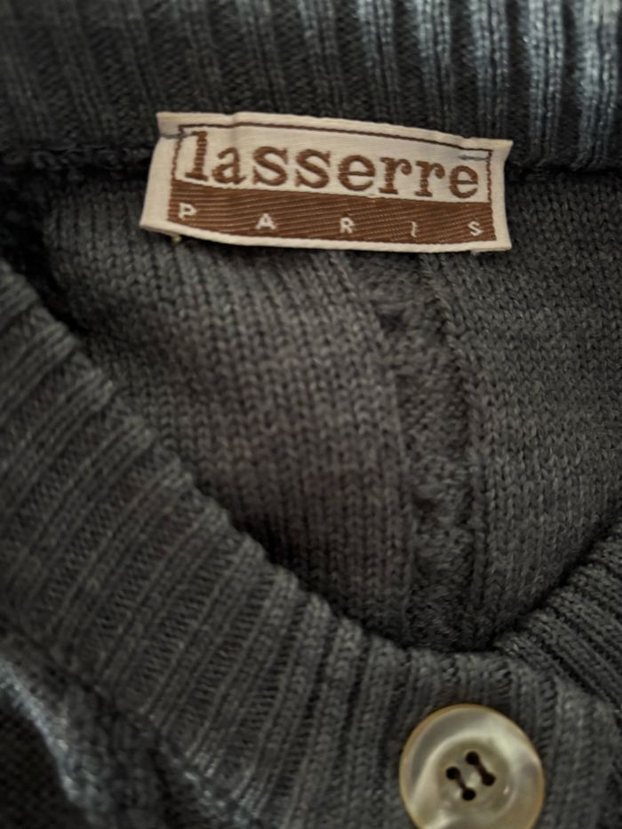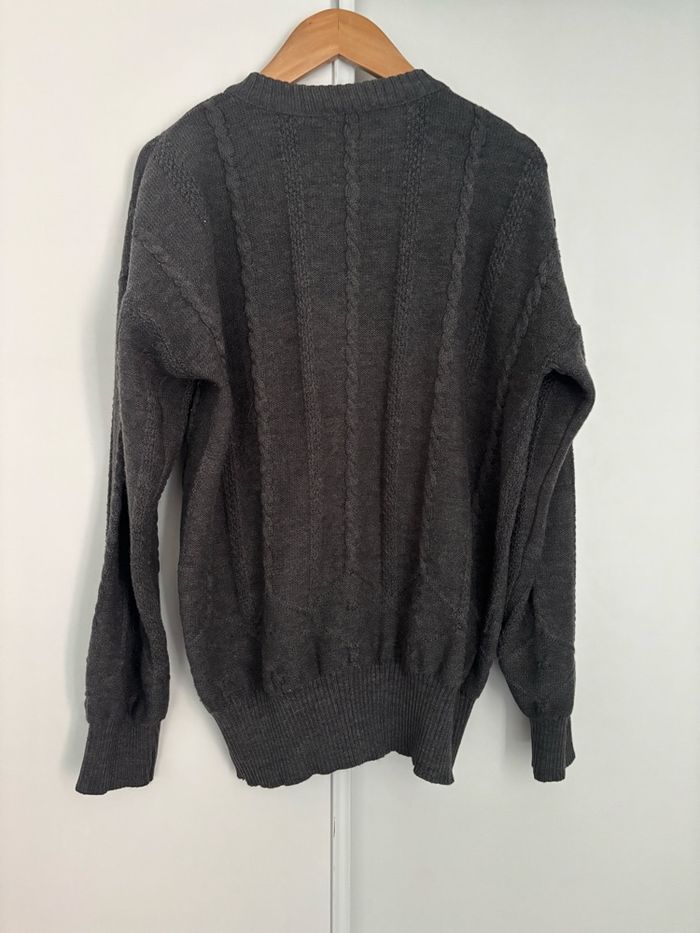Joli gilet vintage gris foncé, en maille avec motifs torsadés et broderie rose délicate sur la poitrine 🌹 Boutonnage sur le devant, coupe droite légèrement courte, très sympa porté rentré ou sur un jean taille haute. Matière : 51 % laine / 49 % acrylique Marque : LaSserre Paris. État : bon état général, pas de trou ni tache visible. Style rétro / romantique, parfait pour la mi-saison. Mesures à plat : • Longueur : 69 cm • Aisselles à aisselles : 60 cm Correspond plutôt à un L/XL selon le rendu souhaité. Envoi soigné et rapide. #vintage #giletvintage #maillevintage #cardigan #vintagestyle #retro #broderie #pullvintage #secondevie
