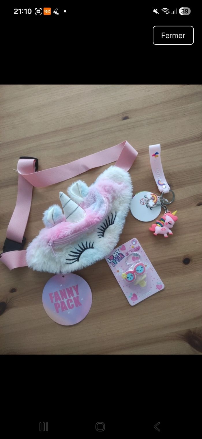 Lot de 3 petites surprises girly neuve avec étiquette, une sacoche banane, un porte clé et un Labello