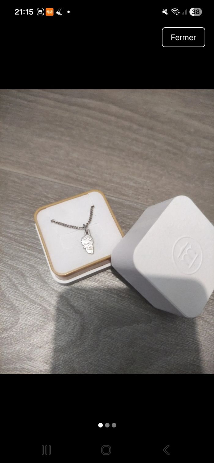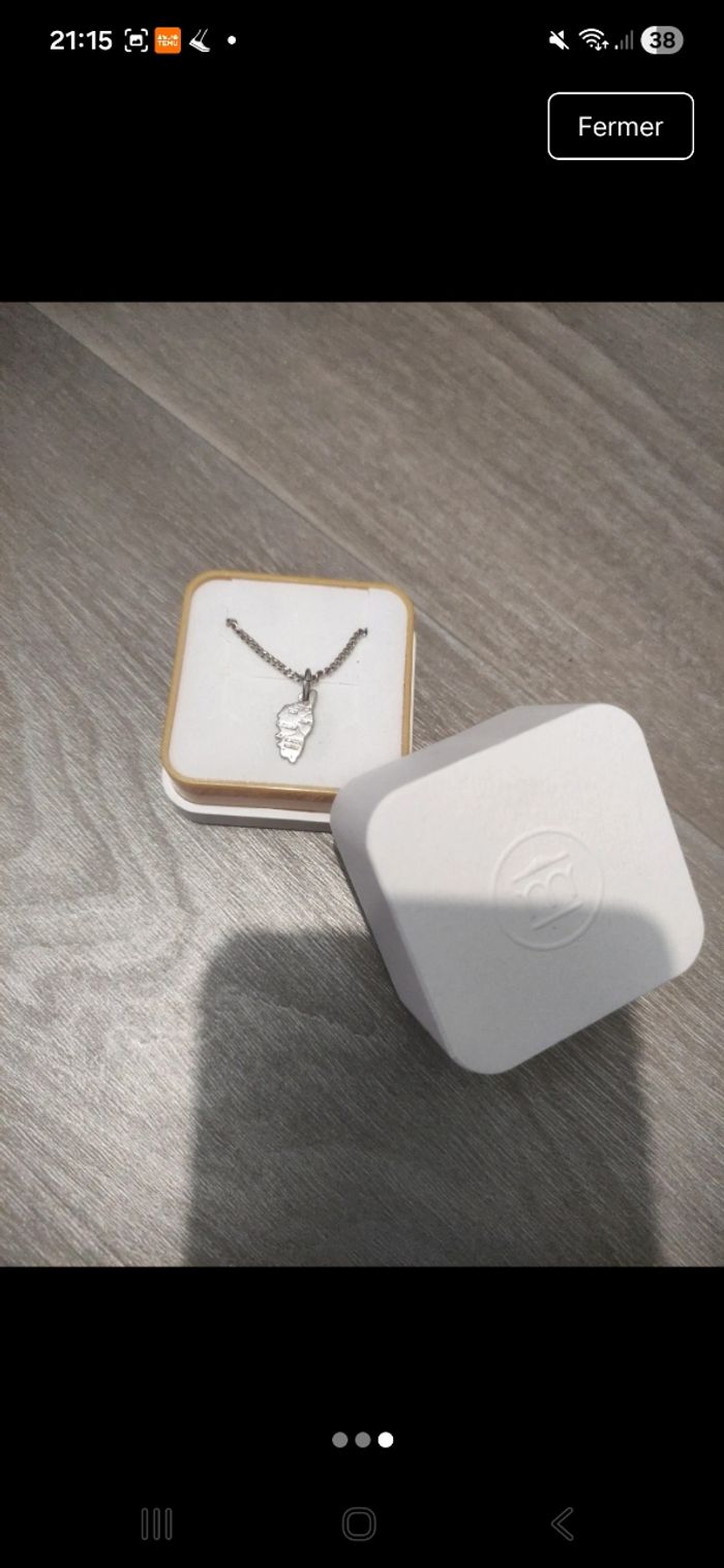 Chaine et pendentif carte de la corse neuf jamais porté dans sa boîte en argent - photo numéro 3
