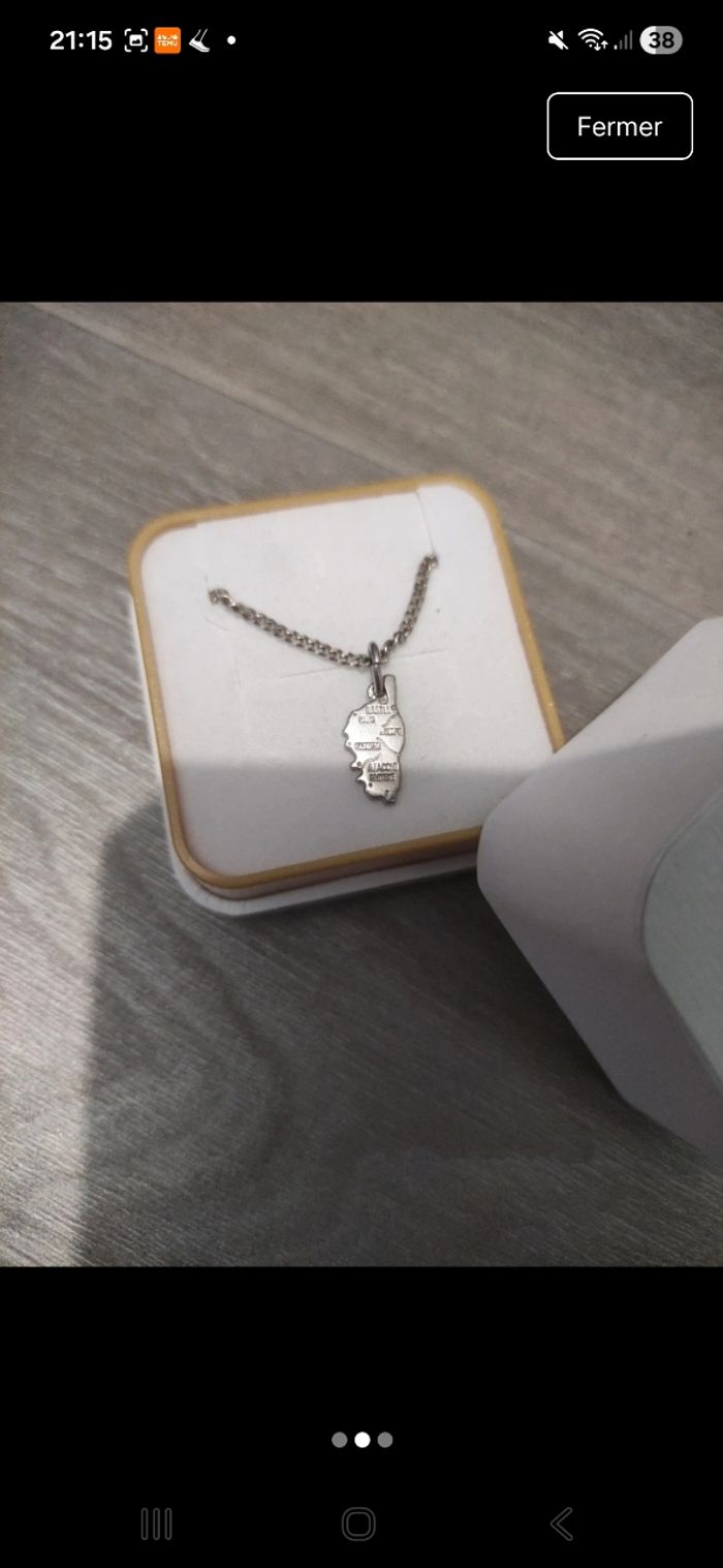 Chaine et pendentif carte de la corse neuf jamais porté dans sa boîte en argent - photo numéro 1