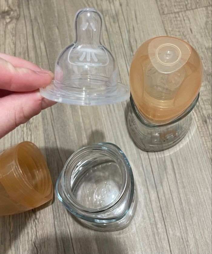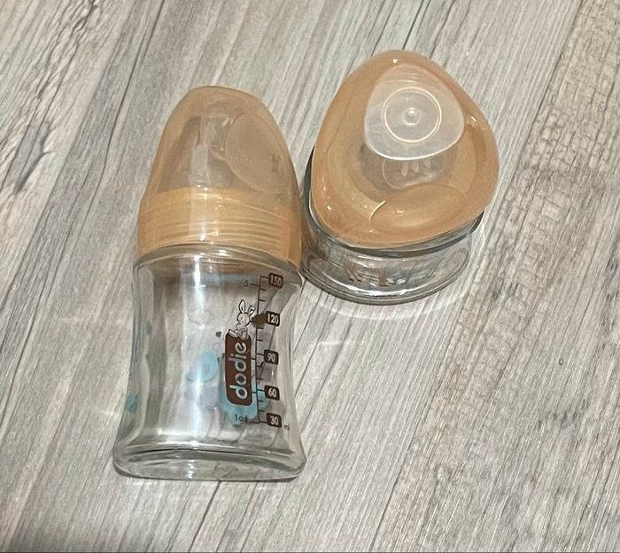 2 biberons en verre 150ml de lait marque Dodie Tétine taille 1 et taille 2 Jamais utilisé