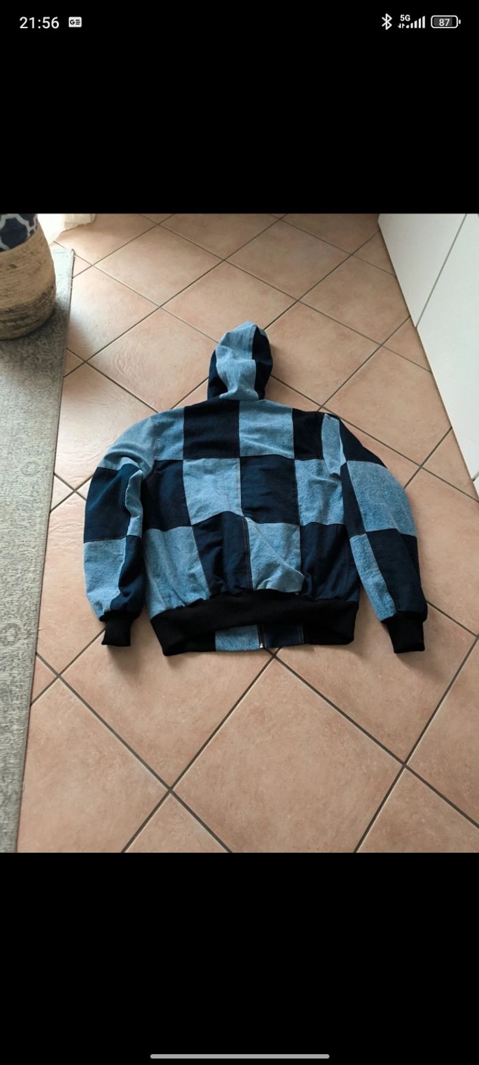 Veste Carhartt rework artisanale, réalisée à partir de différents panneaux de denim dans des tons bleu jean, bleu-clair. Chaque pièce est unique, avec un patchwork soigneusement assemblé pour un rendu à la fois streetwear, workwear et vintage. ✔️ Coupe confortable ✔️ Capuche doublée ✔️ Fermeture zippée ✔️ Finitions solides