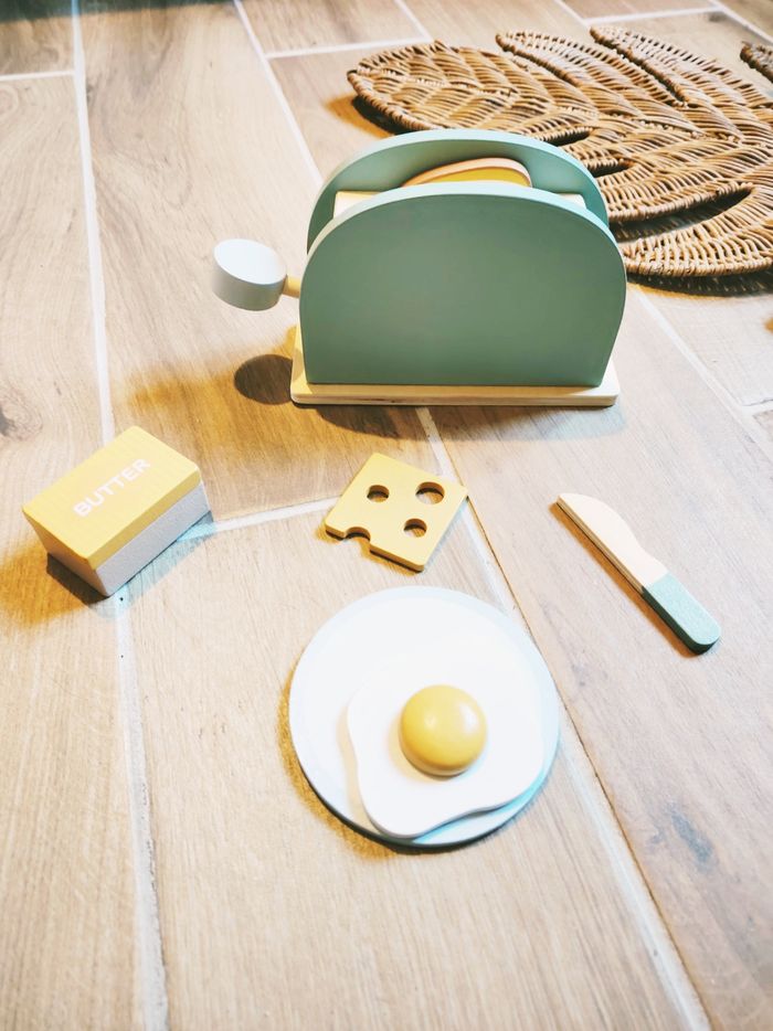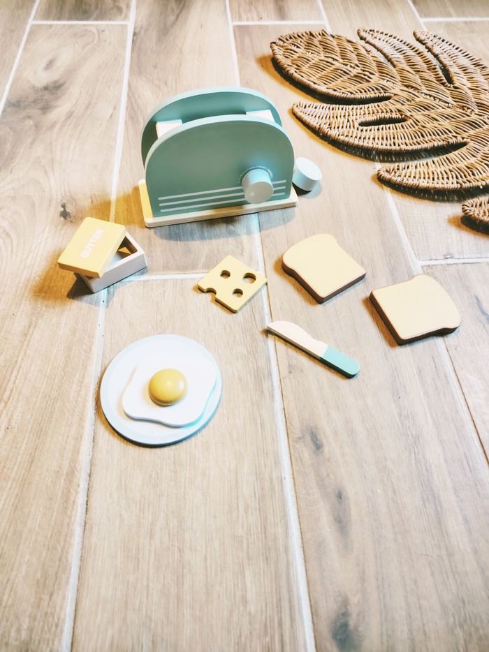 🍞 Jeu d'imitation - Dinette en bois grille pain avec accessoires et aliments petit déjeuner -JB1966