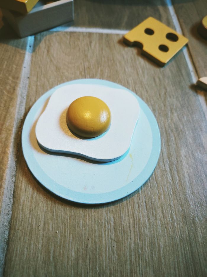 ✨Une tranche de fromage, un œuf au plat réaliste, un couteau à tartiner assorti et un bloc de beurre "Butter".
