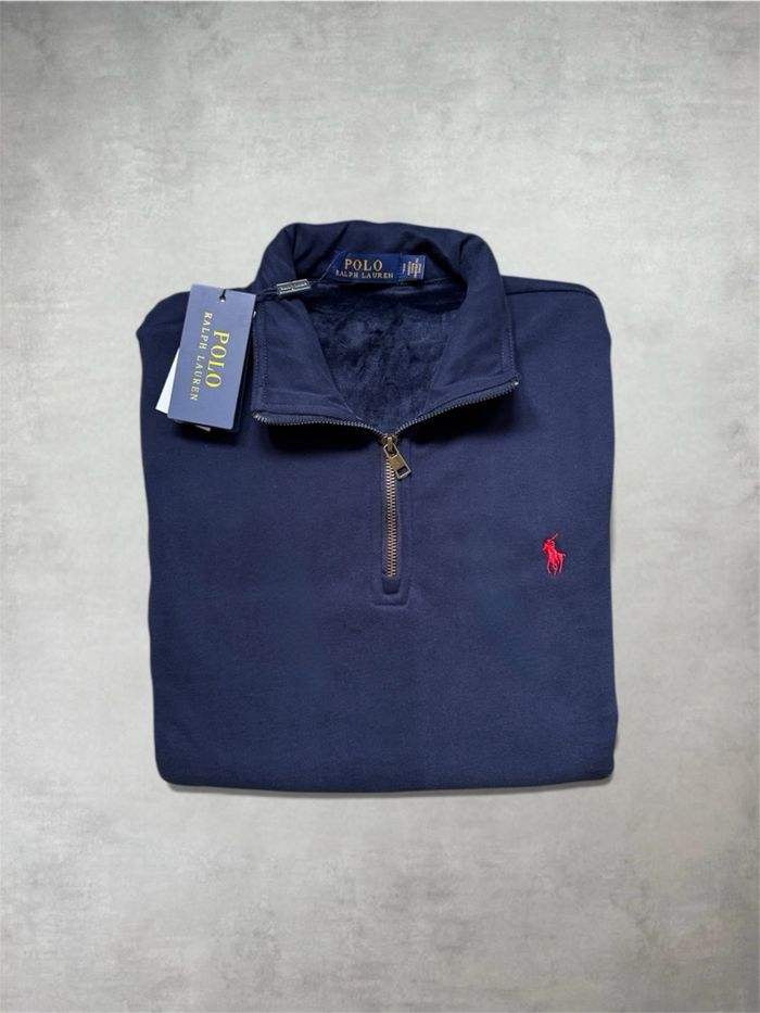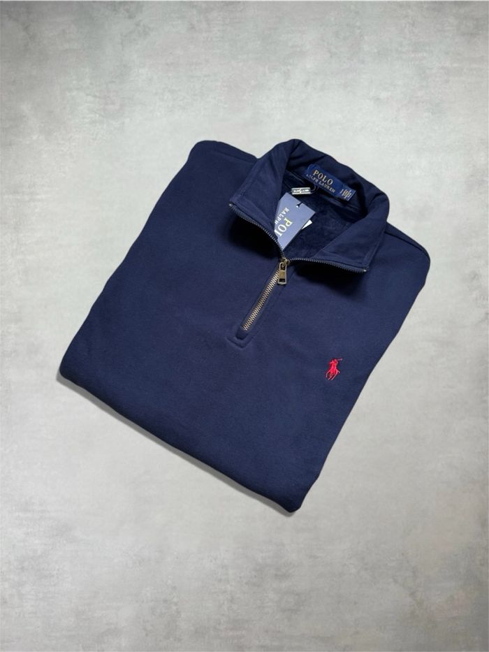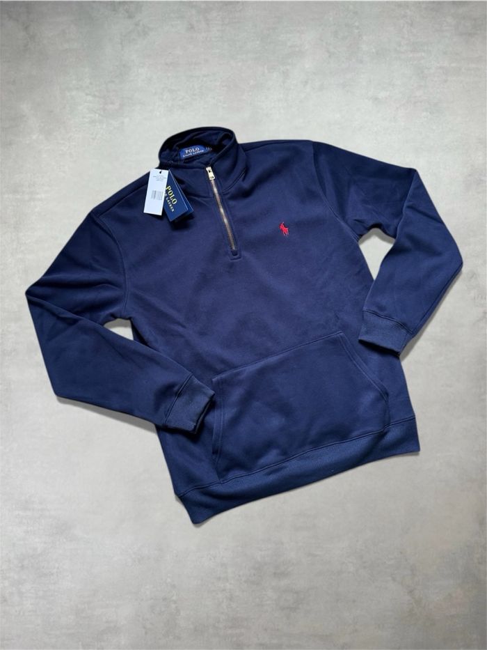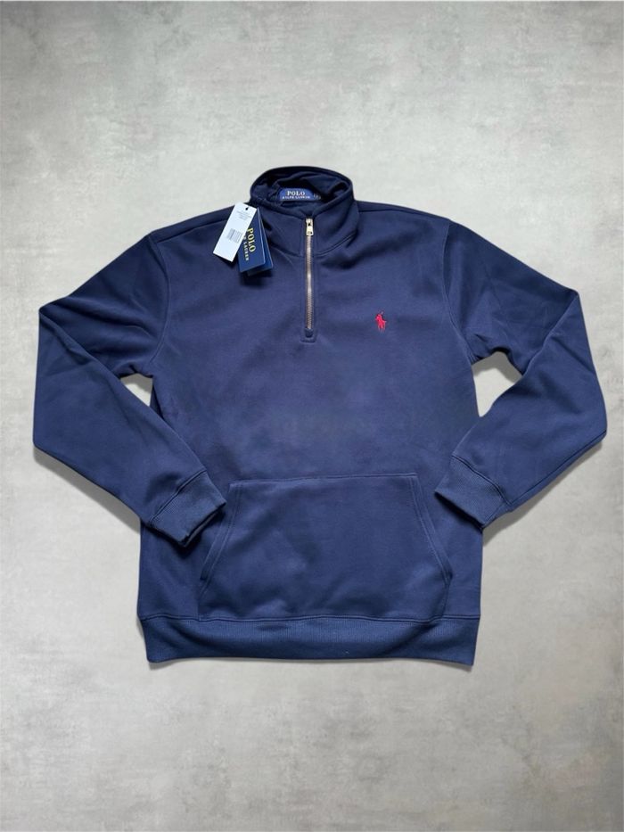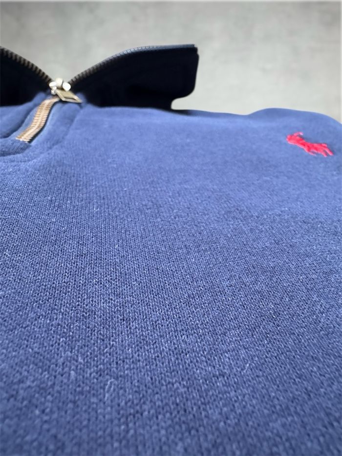 Pull half-zip Ralph Lauren bleu – Logo rouge– Taille S