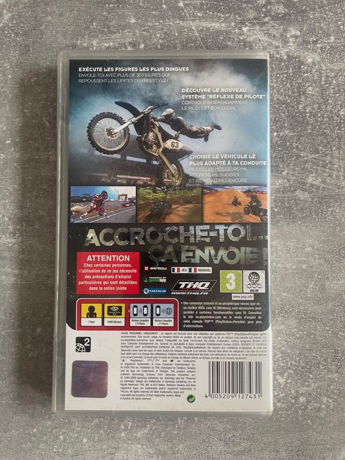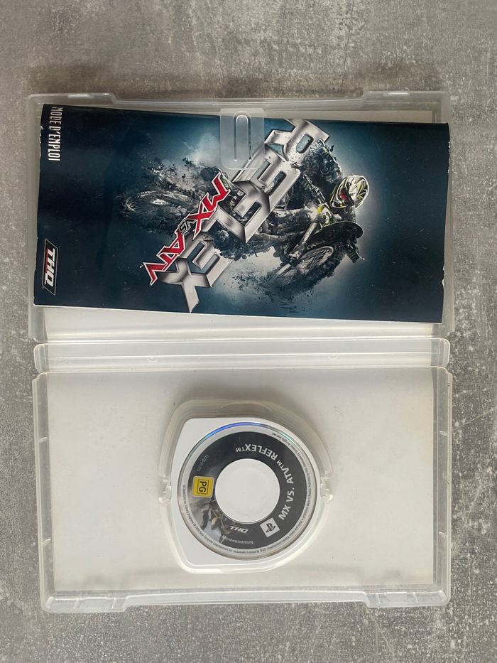 Jeu pour Sony PSP, MX vs ATV reflex en français. Bon état. Complet avec boite et notice. Envoi rapide et soigné. Consultez mes autres articles pour de moindres frais de port.