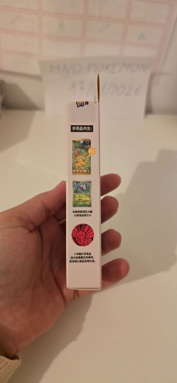 ​ Vends coffret officiel Pokémon issu de l'extension très prisée Pokémon 151. Il s'agit de l'édition exclusive de Chine continentale (Mainland China), réputée pour sa superbe qualité d'impression. ​État : Neuf et Scellé (Sealed). La boîte est intacte, jamais ouverte. ​Contenu du coffret : ​Un jeton (Coin) exclusif de collection (modèle aléatoire parmi 4 variantes possibles du personnage). ​Une carte promotionnelle brillante. ​3 boosters de l'édition Pokémon 151 (version chinoise). ​Détails importants : ​Produit 100% authentique avec hologramme officiel au dos. ​Idéal pour les collectionneurs de sets "151" ou de produits scellés (Sealed Collection). ​Envoi rapide et très soigné (protection bulle garantie). ​Mots-clés : #Pokemon #Pokemon151 #TCG #Collection #PokemonCards #Sealed #Neuf #PokemonChinois