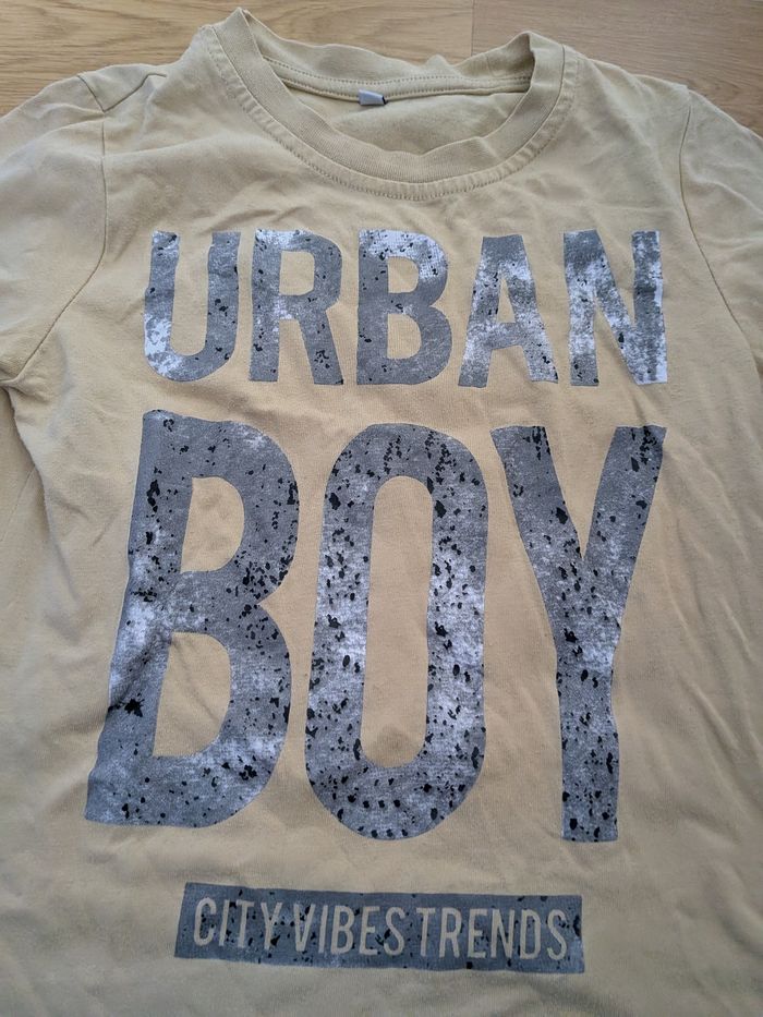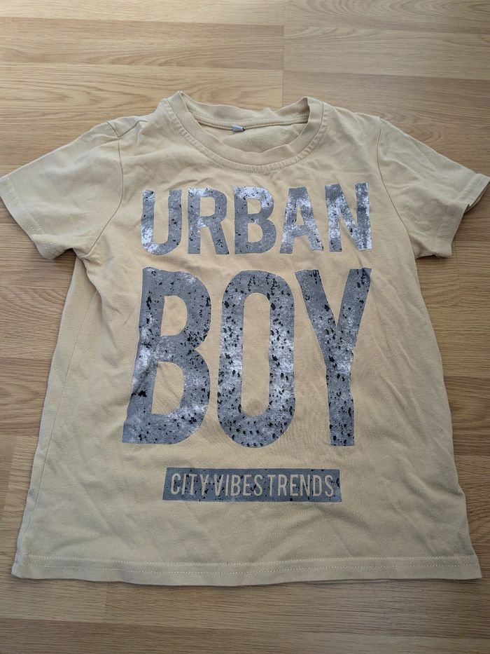 Joli t-shirt manches courtes pour garçon, couleur beige avec grand imprimé “URBAN BOY” sur le devant. Style urbain tendance, parfait pour un look décontracté au quotidien. ✨ Détails : Taille : 6 ans Imprimé gris effet usé très sympa Coupe confortable 📌 État : bon état général, quelques petites traces d’usure normales sur l’imprimé (voir photos), mais rien de gênant. Idéal pour l’école, les sorties ou l’été 🌞
