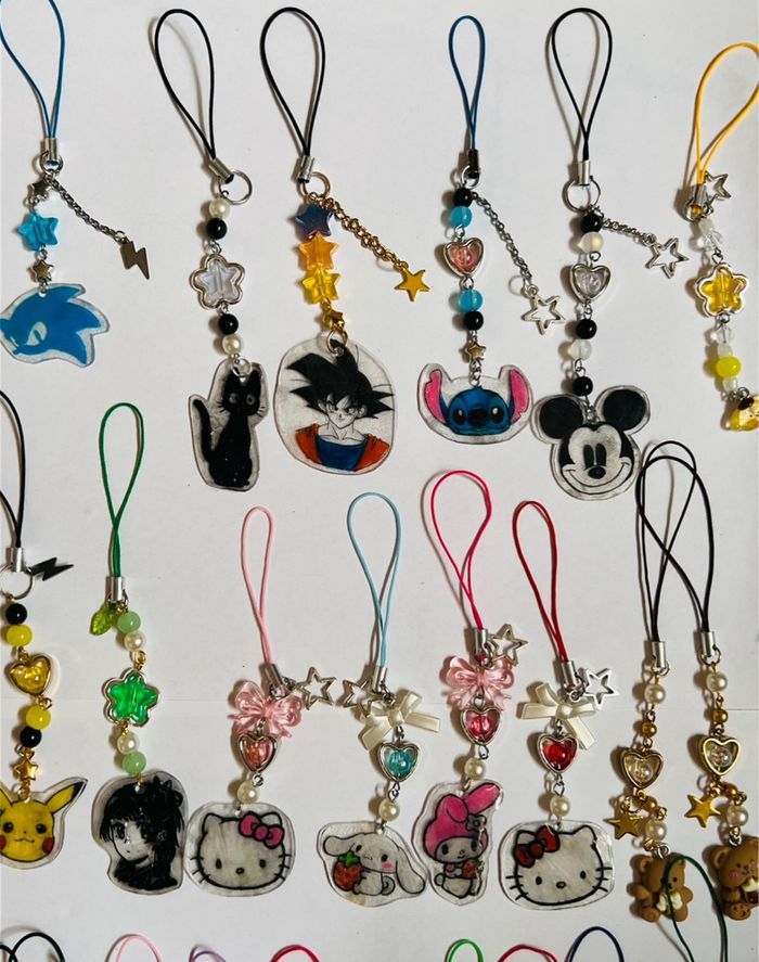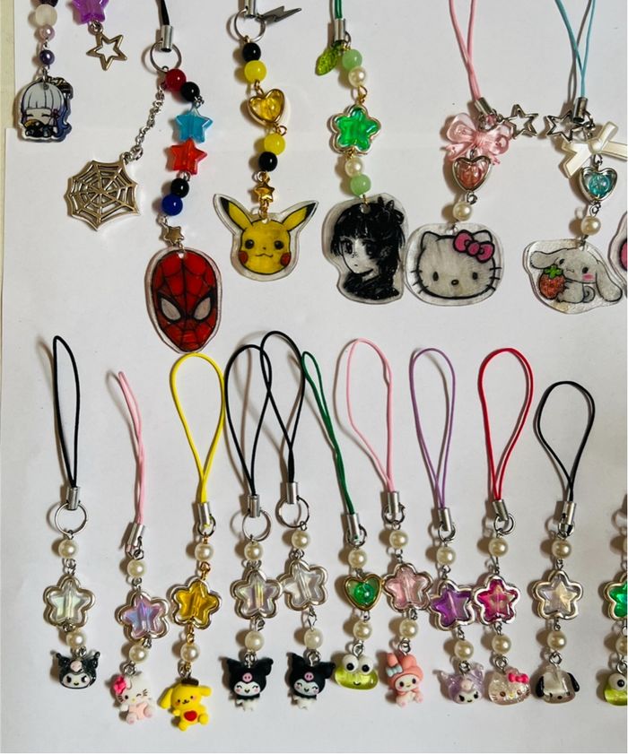 Pleins de charms porte clé différents univers licence Pokémon pikachi sonic pokemon lego spider man hello kitty goku dbz nature stitch mickey