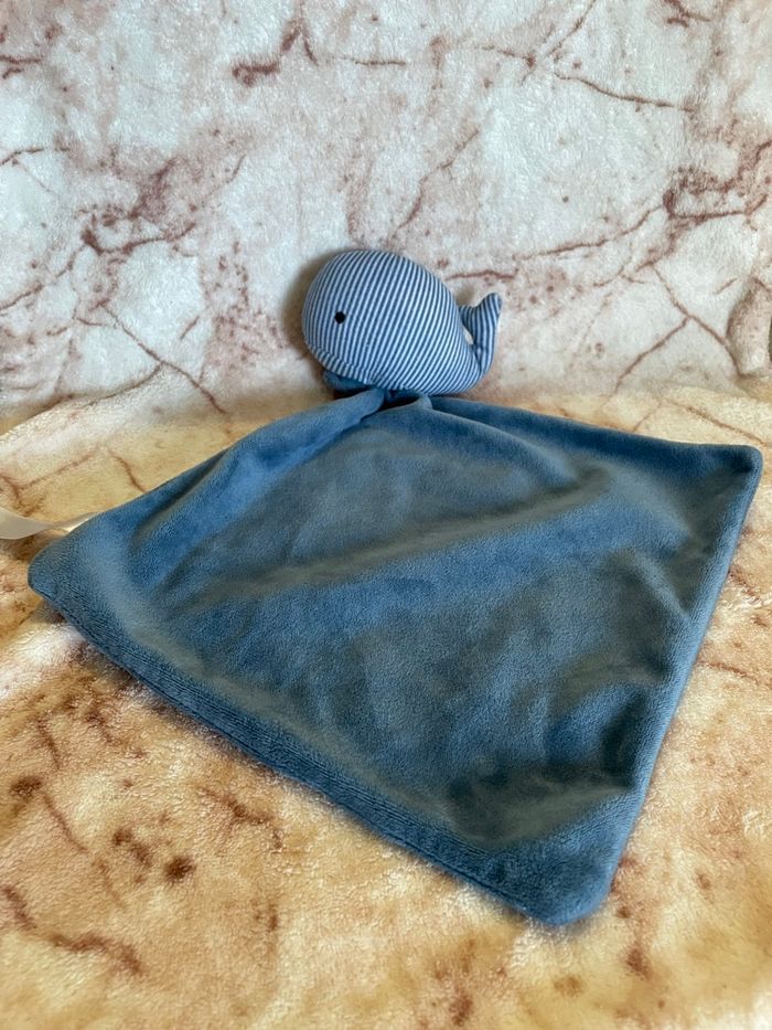 Doudou Baleine grelot rayé bleu et blanc mouchoir Zeeman - photo numéro 2
