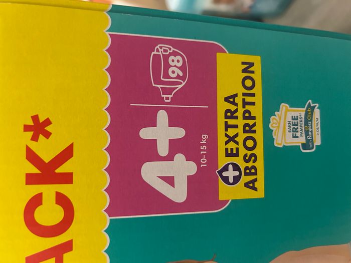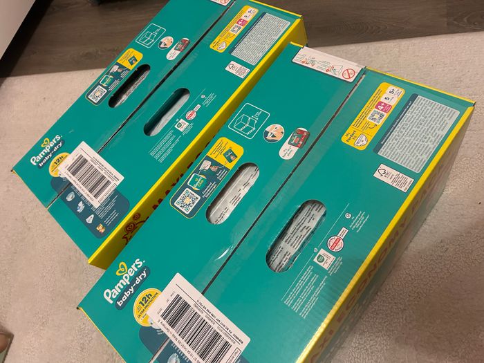 Couches Pampers taille 4+ (10-15kg) 98 couches par carton Neuf 35€ les deux cartons