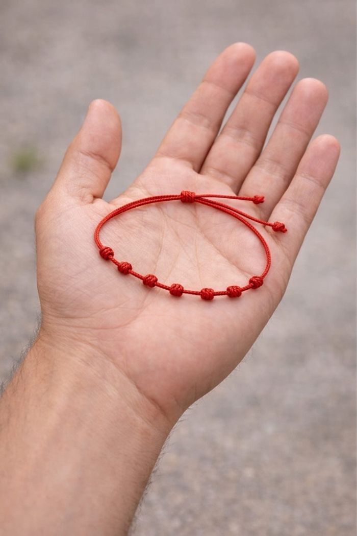 Bracelet porte-bonheur rouge en corde tressée, modèle 7 nœuds, symbole de protection et d'énergie positive. Discret et intemporel. Neuf, jamais porté. Taille réglable, grâce à son cordon ajustable, convient à tous les poignets. Bracelet mixte, convient aussi bien aux femmes qu'aux hommes. Idée cadeau : Idéal comme petit cadeau, porte-chance ou accessoire minimaliste du quotidien. Livré dans un joli pochon. 📌 État : neuf 📌 Couleur : rouge 📌 Matière : corde tressée 📌 Fermeture : coulissante Bracelet symbolique à porter au quotidien ou à offrir a un proche Plusieurs exemplaires disponibles Remise possible pour les achats en lot Envoi rapide et soigné
