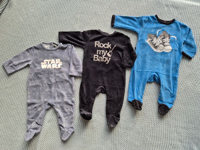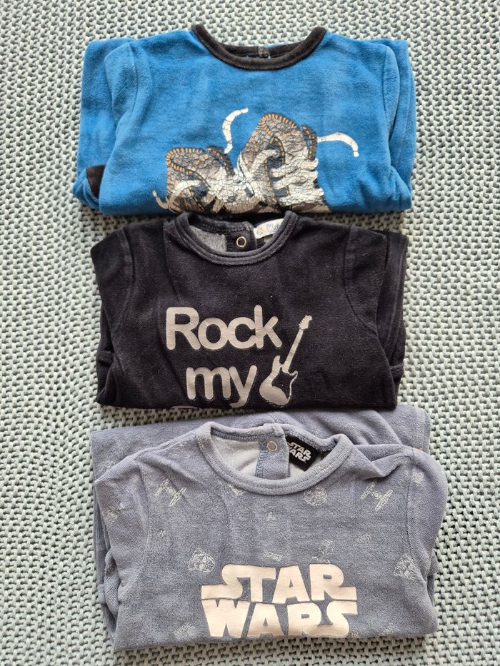 Lot de 3 pyjamas Marque Star Wars. Marque Kitchoun : Rock my baby / Baskets (flocage craquelé) Taille 6 mois. #mimidacgarçon #mimidacgarçon6mois