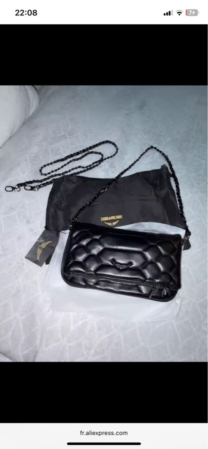 🖤 Sac Zadig & Voltaire État impeccable Magnifique sac Zadig & Voltaire en état quasi neuf, porté très rarement et conservé avec le plus grand soin. La pièce est superbe, élégante et tendance, parfaite pour sublimer une tenue au quotidien comme en soirée. ✨ Points forts : Aspect extérieur impeccable Finitions nettes et de qualité Modèle iconique, recherché et intemporel Style rock-chic signature de la marque 📦 Envoi rapide et ultra soigné : sac protégé avec attention pour qu’il arrive exactement comme sur les photos. 💬 Disponible pour toute question — acheteur sérieux bienvenu.
