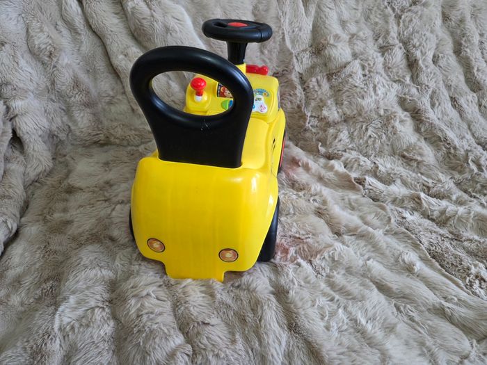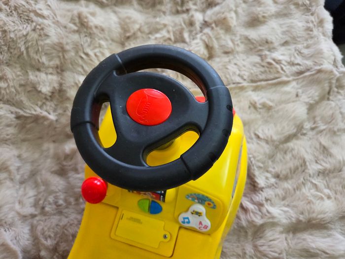 Porteur ludique, fonctionne avec piles Klaxon, 3 chansons pour enfants, son clignotant, son moteur, et des activités frontale. Sécurité arrière pour ne pas tomber. Dès 1 an