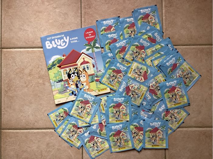 PANINI BLUEY, CET ALBUM A POUR TITRE BLUEY ALBUM VIDE ET NEUF + 60 POCHETTES NEUVES Envoi rapide et soigné Egalement disponible : - Lot de 20 pochettes neuves: 10€ - Lot de 30 pochettes neuves: 15€ - Lot Album vide + 40 pochettes neuves: 18€ - Lot Album vide + 60 pochettes neuves: 26€