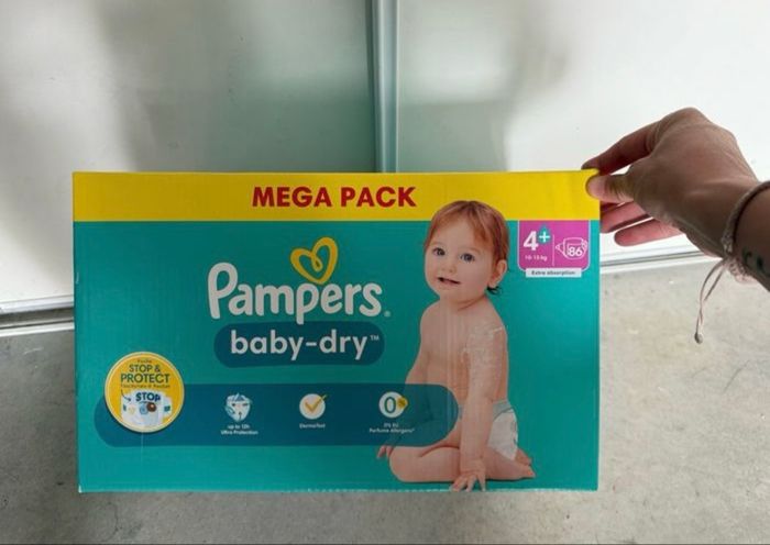 Carton de 86 couches Pampers baby dry neuf taille 4+ - photo numéro 1