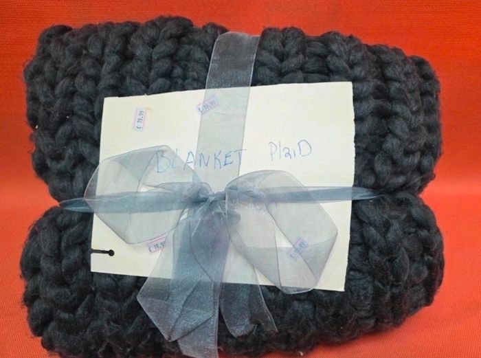Vends un plaid à grosse maille (Chunky Knit) noir, idéal pour une décoration d'intérieur moderne et chaleureuse. Couleur: Noir profond. Style: Design scandinave avec de larges mailles tressées ultra-moelleuses. Dimensions: Environ 127 x 152 cm. État: Neuf, présenté avec un élégant ruban gris. Un accessoire indispensable pour vos moments de détente au coin du feu ou sur le canapé ! #decoration #cocooning #plaid #chunkyknit #noir #maison #neuf #cadeau