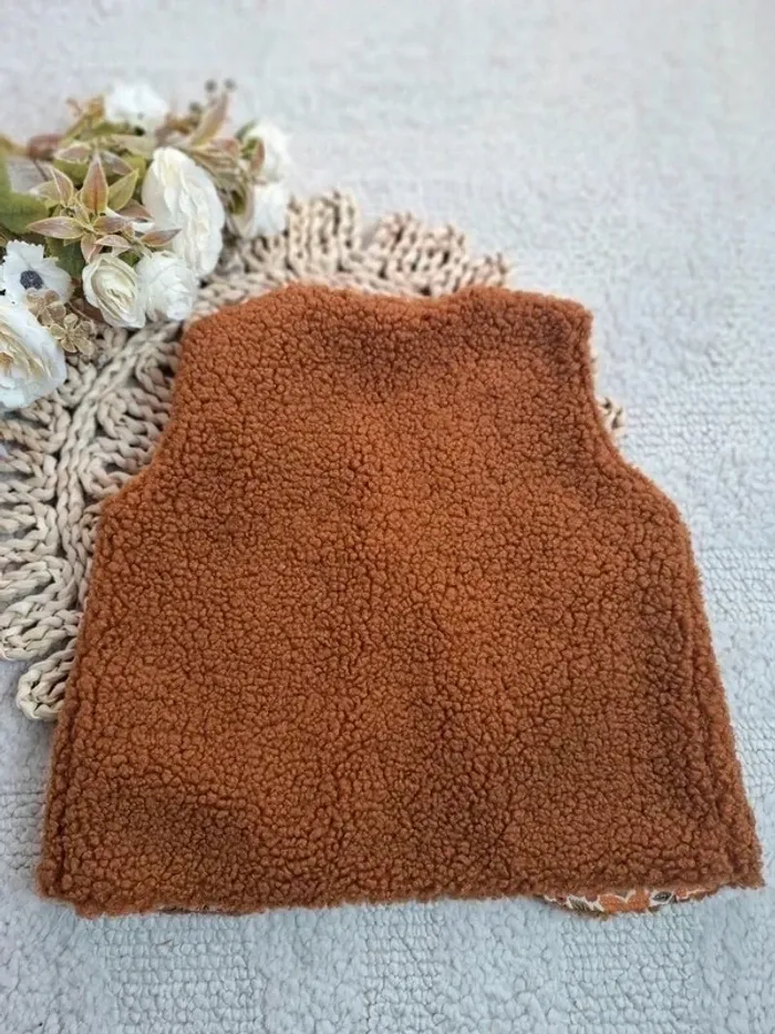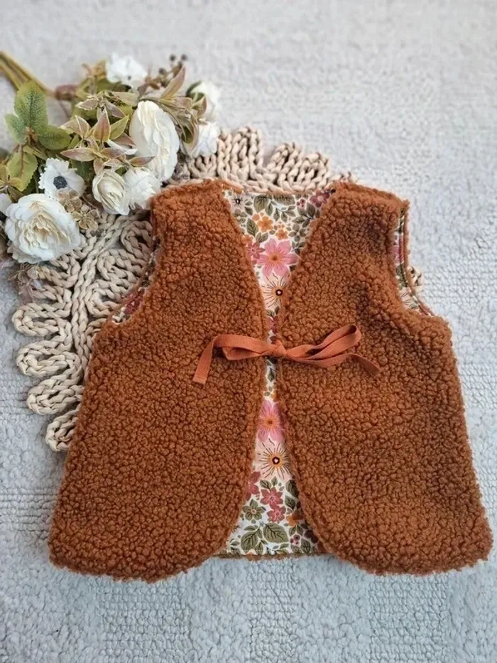 - Gilet berger réversible taille 3/4 ans Petits liens à nouer 🎀 - Dimension largeur sous le bras 30 cm environ hauteur 34 cm environ - Composition tissu bouclette 100 % polyester et tissu doublure 100 % coton - Lavage en machine à 30 ° - ⛔️ Pas de sèche linge #LaboutiquedeCharliegiletberger