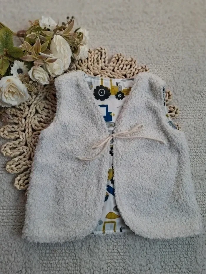 - Gilet berger réversible taille 3/4 ans Petits liens à nouer 🎀 - Dimension largeur sous le bras 30 cm environ hauteur 34 cm environ - Composition tissu bouclette 100 % polyester et tissu doublure 100 % coton - Lavage en machine à 30 ° - ⛔️ Pas de sèche linge #LaboutiquedeCharliegiletberger