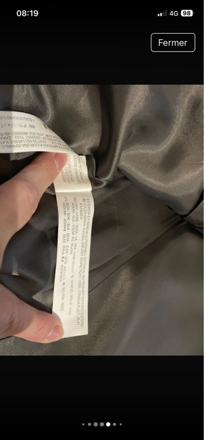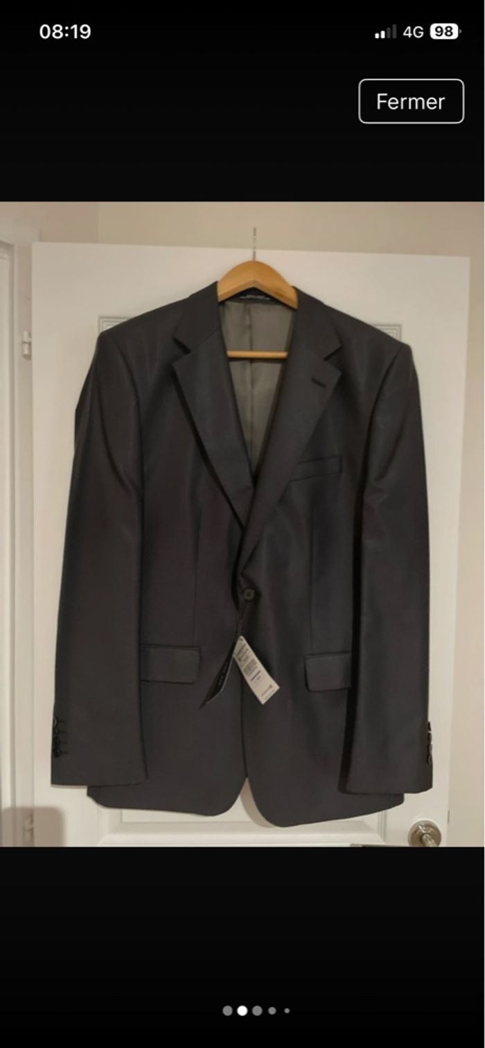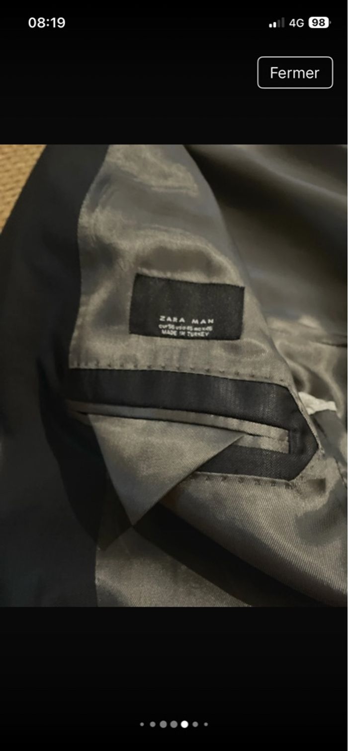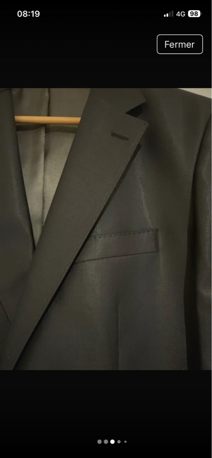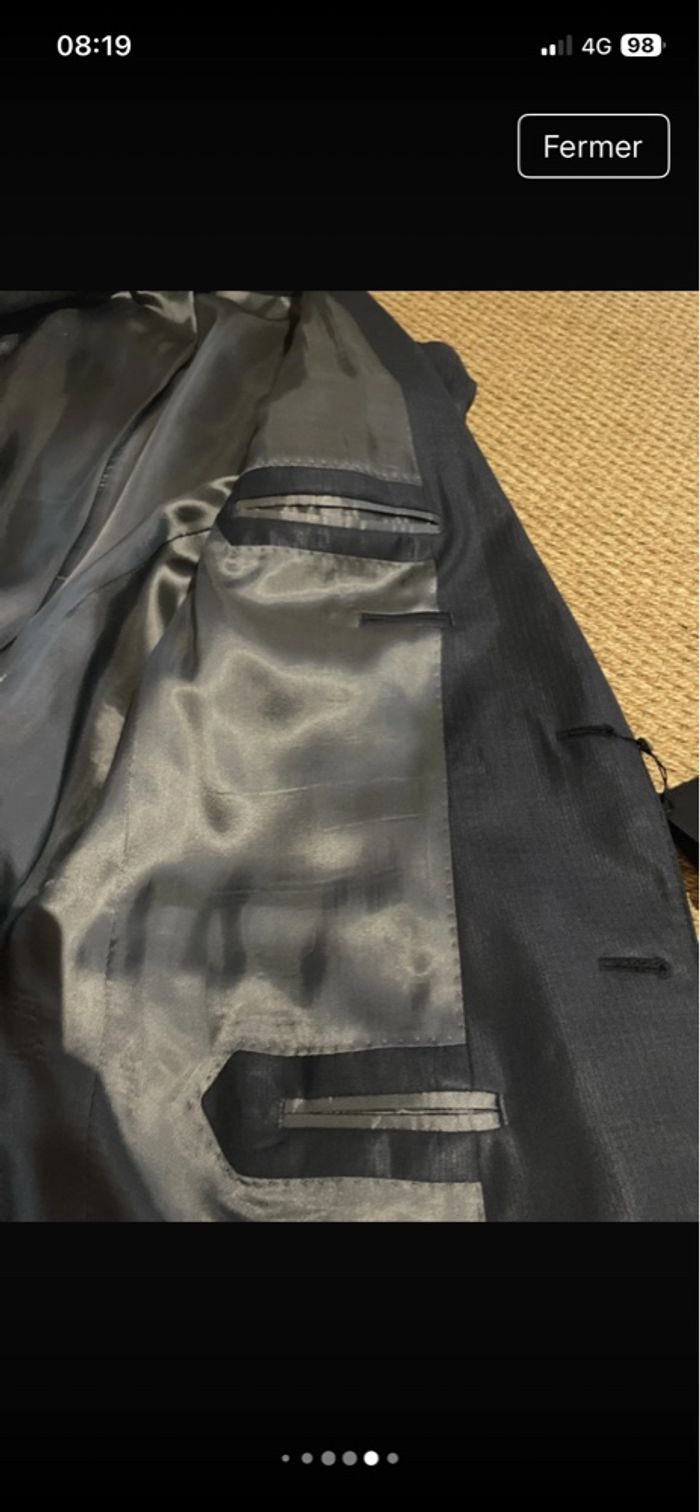 SUBLIME veste de costume Noire satinée composée de Laine 79% et de soie 21% Entièrement doublée, viscose 100% 4 petits boutons noirs en fin de manches 4 poches de tailles différentes sur l'intérieur. 3 poches sur l'avant encore cousues. Toutes les finitions sont surpiquées 2 fentes sur le bas du dos. TRÈS BELLE E NEUVE ÉTIQUETÉE prix initial: 139€ 🤩