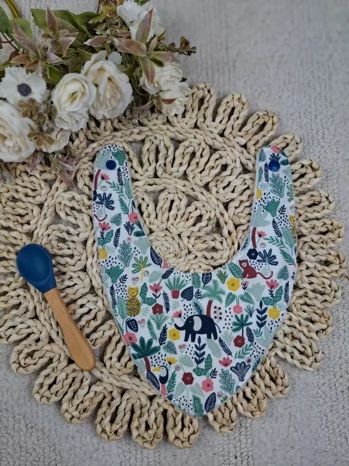 dimension du bavoir : - Environ 14 cm de hauteur à partir du col sur 19 cm de large - composition tissus 100 % coton et éponge 94% Coton 6% Polyester - Finitions surpiqûres. - Lavage en machine à 40° après un premier lavage à 30 ° - ⛔️ Pas de sèche linge #LaboutiquedeCharliebavoirbebe