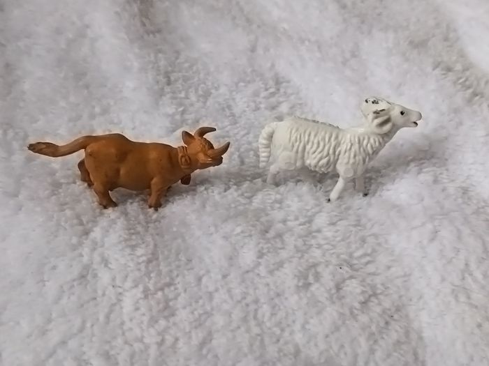 Lot de 2 Figurines Animaux de la Ferme - Vache et Bélier - photo numéro 1