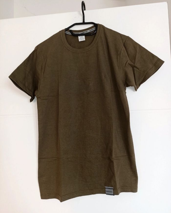 Vends lot de 2 t-shirts de la marque Unno, coloris kaki État : Parfait état, comme neufs. Coupe : Ajustée et confortable (grâce à l'élasthanne). Matière : 95% Coton / 5% Élasthanne (douceur et souplesse garanties). Détails : Col rond, petit patch "Unno" discret en bas du vêtement. Taille : M #Unno #TshirtHomme #Kaki #OliveGreen #BasicStyle #CotonElastic #TshirtM #ModeHomme #VetementHomme #LotTshirts #BasiqueHomme