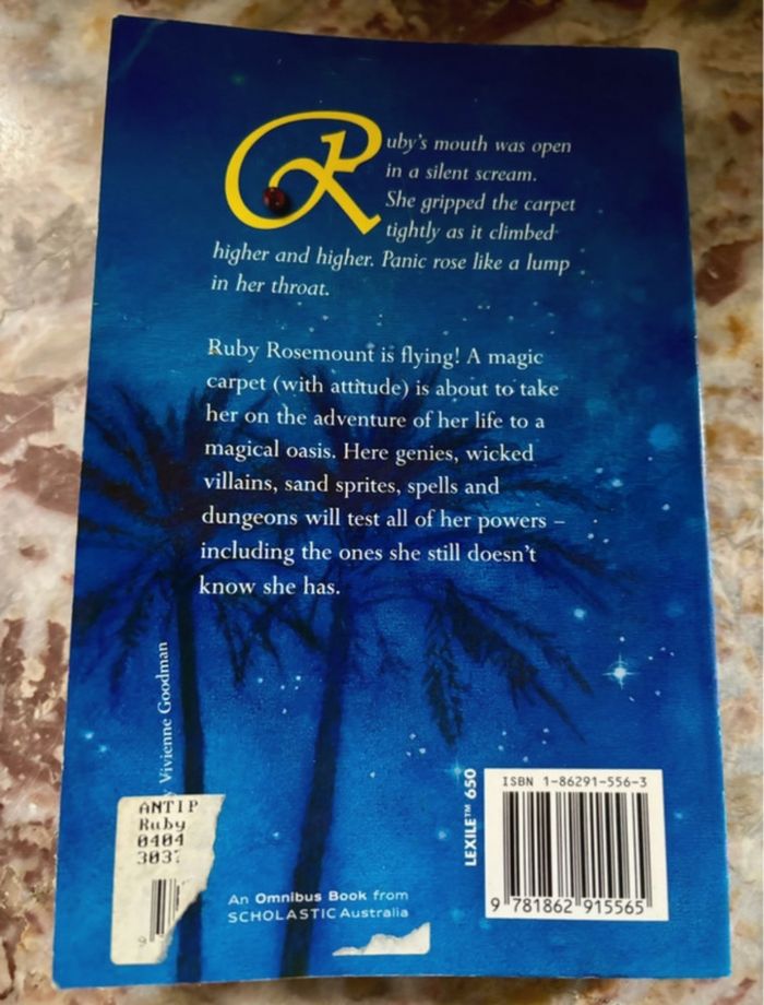 Livre jeunesse en anglais. Titre : Ruby Rosemount and the Magic Carpet Auteur : Jodie Brownlee Éditeur : Scholastic Niveau : 9-12 ans (ou lecteurs niveau A2/B1) Thèmes : magie, tapis volant, aventures Bon état, lu une seule fois. Idéal pour apprendre l’anglais en s’amusant. 247 pages, Paperback Ruby Rosemount and the Magic Carpet was nominated by the publishing industry for the prestigious CBCA Book of the Year Award, was Dymocks Critic's Choice and Angus and Robertson's book of the month. Ruby Rosemount and the Traveler's Telescope was nominated by young readers for the W.A. Young Readers Book Award. The series appears on the NSW Premier Reading Challenge list, an Australian state government initiative to encourage children to read. Ruby Rosemount is flying. A magic carpet (with attitude) is about to take her on the adventure of her life to a magical oasis. There genies, wicked villains, sand sprites, spells and dungeons will test all of her powers - including the ones she still doesn't know she has.