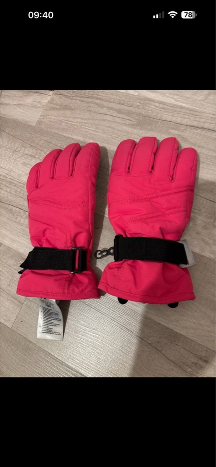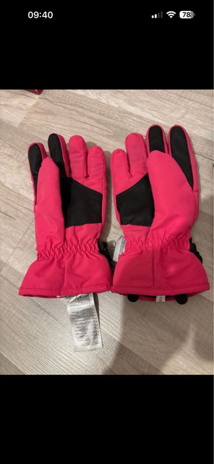 Gant rose mis 4 jours Et moufles noirs neuve sans étiquette Taille 5 (10-12 ans) Ma fille a 11 ans et ça lui va parfaitement