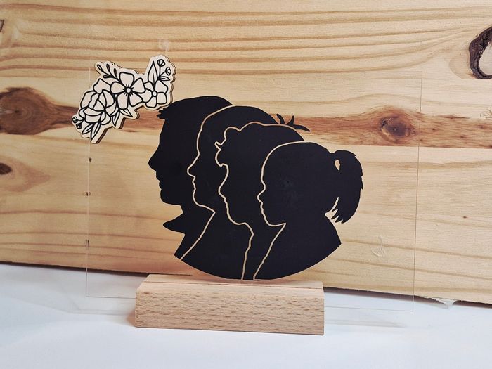 Cadre silhouette personnalisé sur socle en bois – Portrait famille, couple ou enfant  - photo numéro 1