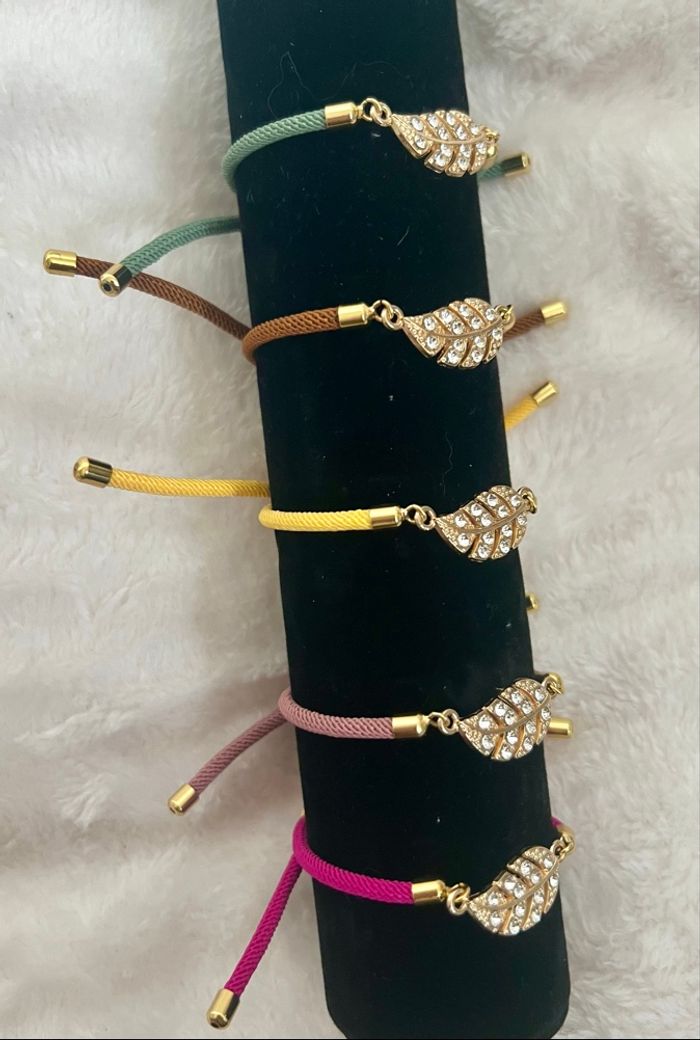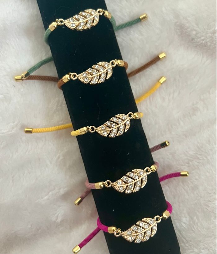 Bracelet feuille Strass Réglable à l’arrière avec lien. Très bon état Vendu à l’unité Envoyez moi un message pour la couleur qui vous intéresse. #bracelet #braceletfemme #réglable #couleurs #feuille #strass