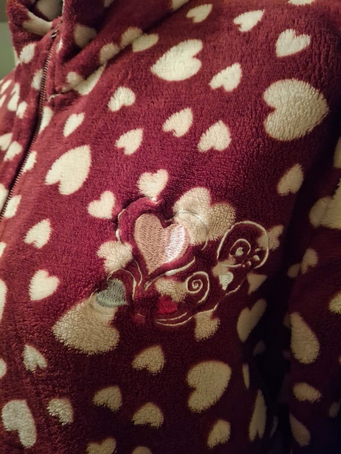 Robe de chambre pilou rouge bordeaux cœurs M - photo numéro 3
