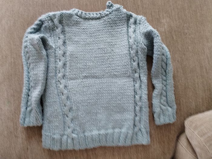 Pull en laine tricoté à la main en très bon état, taille 5-6 ans