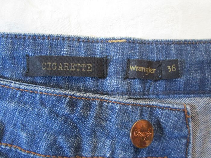 👖Jeans homme coupe Cigarette de chez Wrangler, Taille 46 (36US) Coupe droite légèrement élastiquée Le jean Cigarette de chez Wrangler est plus ajusté qu'un jean droit classique, mais plus ample qu'un jean slim. C'est un entre-deux. Conçu avec une taille haute, il se resserre légèrement à la cheville, créant une silhouette qui allonge les jambes tout en offrant plus de confort qu'une coupe slim et plus d'élégance qu'un jean baggy ou loose. ✨ État / Observation : En très bon état, il détient des effets troués volontaires (voir photos) 🔹 Marque : Wrangler 🔹 Modèle : Cigarette 🔹 Couleur : bleu stone 🔹 Coupe : droite cigarette 🔹 Matière : 99% coton - 1% Elasthanne 🔹 Braguette : boutonnée 🔹 Taille : W36 L32 📏Mesures (voir photo)📏: (A) Mesure ceinture taille : 47 cm (B) Mesure hauteur : 103 cm (C) Mesure longueur jambe : 75 cm (D) Mesure largeur bas : 20 cm (E) Mesure cuisse : 29 cm (F) Mesure entre-jambe : 31 cm ℹ️ Vous avez une question ? Besoin de plus d’informations ? N’hésitez pas à m’envoyer un petit message. ⭐⭐Offre sérieuse acceptée⭐⭐ 📦 Expéditions des colis : 🔹Shop2Shop = Tous les jours 🔹Colissimo = Tous les jours 🔹Mondial Relay = 48/72h