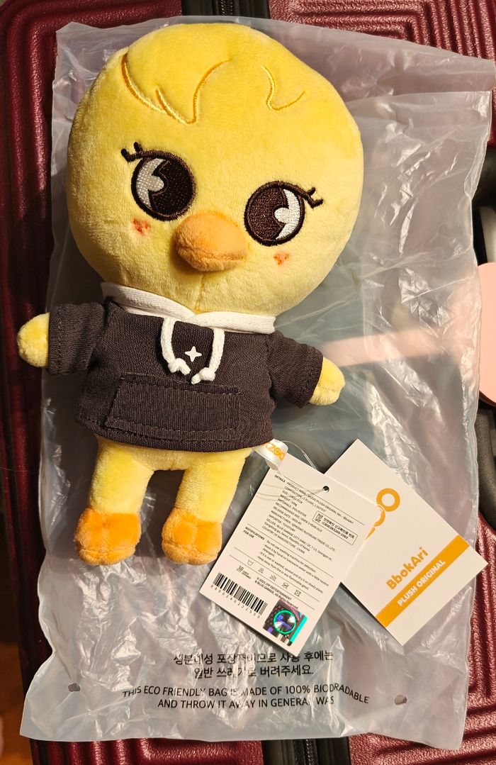 Je vends à contre cœur ma peluche originale de BbokAri. Elle est neuve, elle n'est sortie qu'une fois de son sachet, et c'est pour faire ces photos. Stray kids felix BbokAri skzoo
