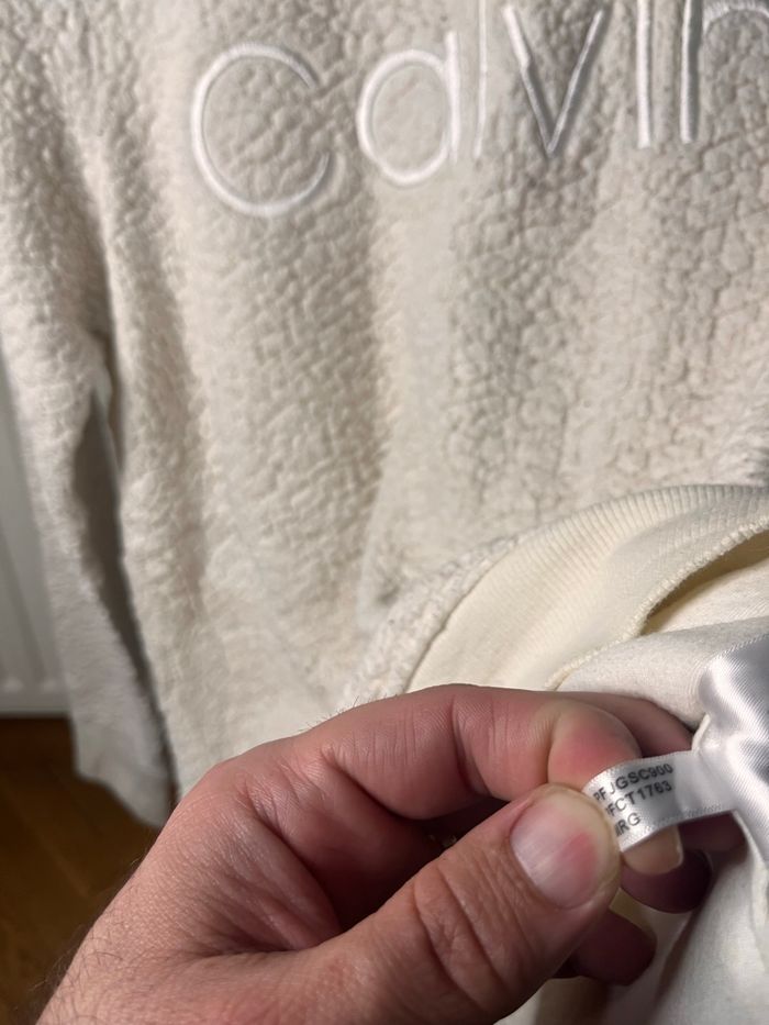 Sweat polaire col rond Calvin Klein blanc écru beige - Taille M - photo numéro 5
