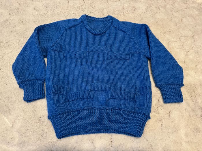 Pull col rond tricoté main bleu - 3 ans - photo numéro 1