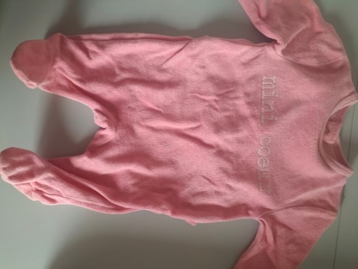 Pyjama 1 mois. Peu servi. Lavé avec lessive spécial bébé. Non repassé. Toutes les pressions présentes