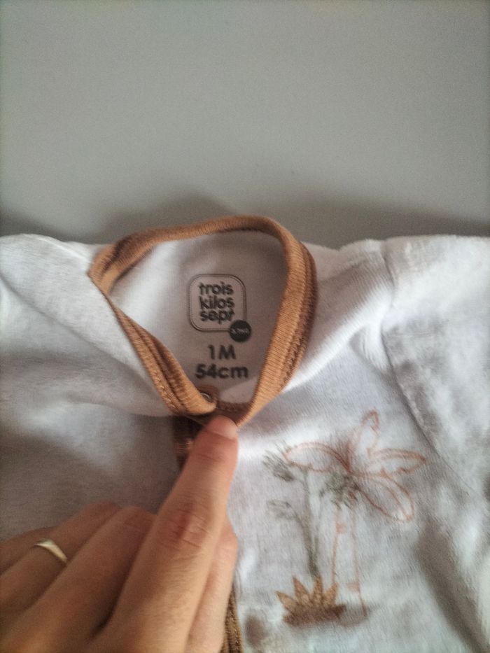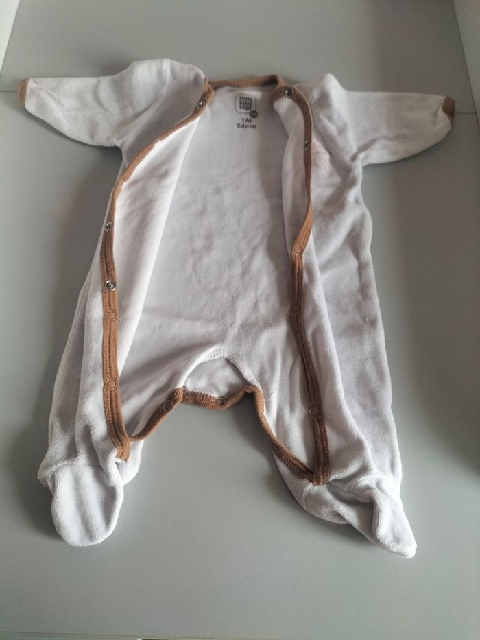 Pyjama 1 mois. Peu servi. Lavé avec lessive spécial bébé. Non repassé. Toutes les pressions présentes