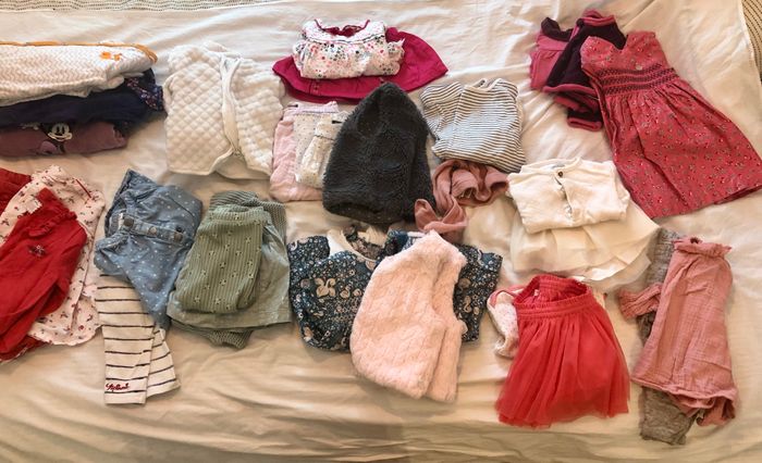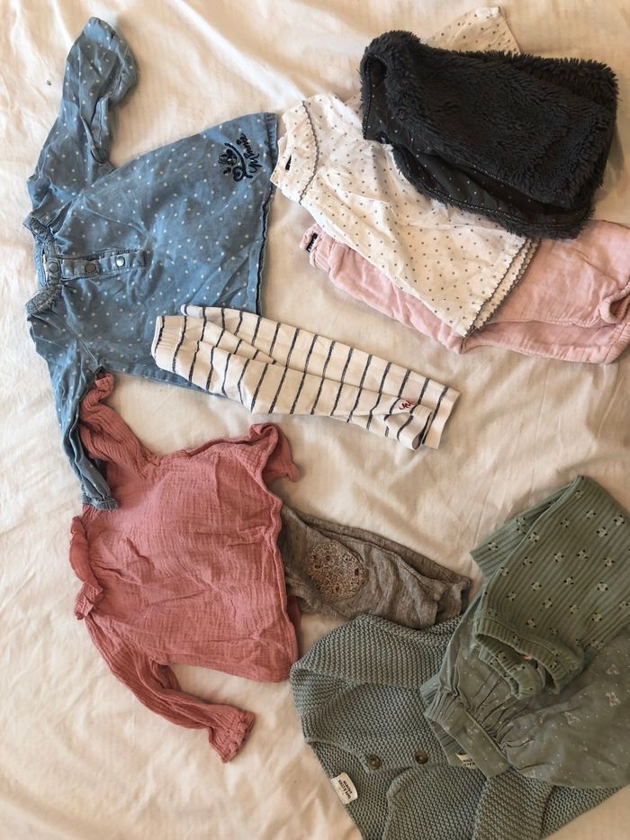 Je vend ce lot pour fille composé de 12 ensembles et 4 pyjamas de marques sergent major, Ralph Laurent, dpam, Zara, kiabi… En très bon état. 6-9 mois