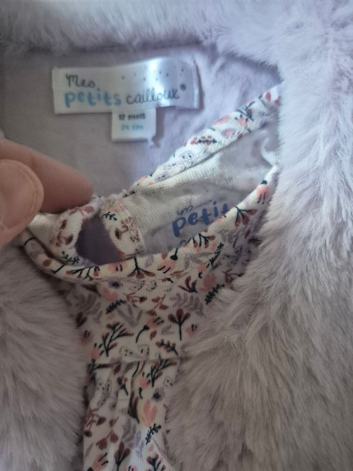A vendre ensemble ( mes petits cailloux ) robe et gilet . taille 12 mois en tres bon état. Au prix de 5 euros